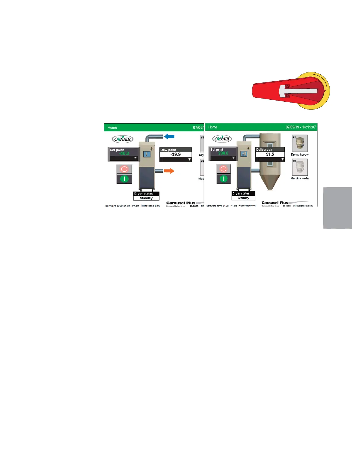 1 Turn on the main power to the dryer and system components. Check to make sure