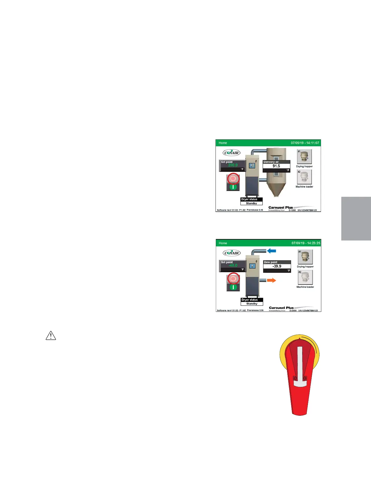 2 Observe the dryer status changing to “Stopping” or “Shut-