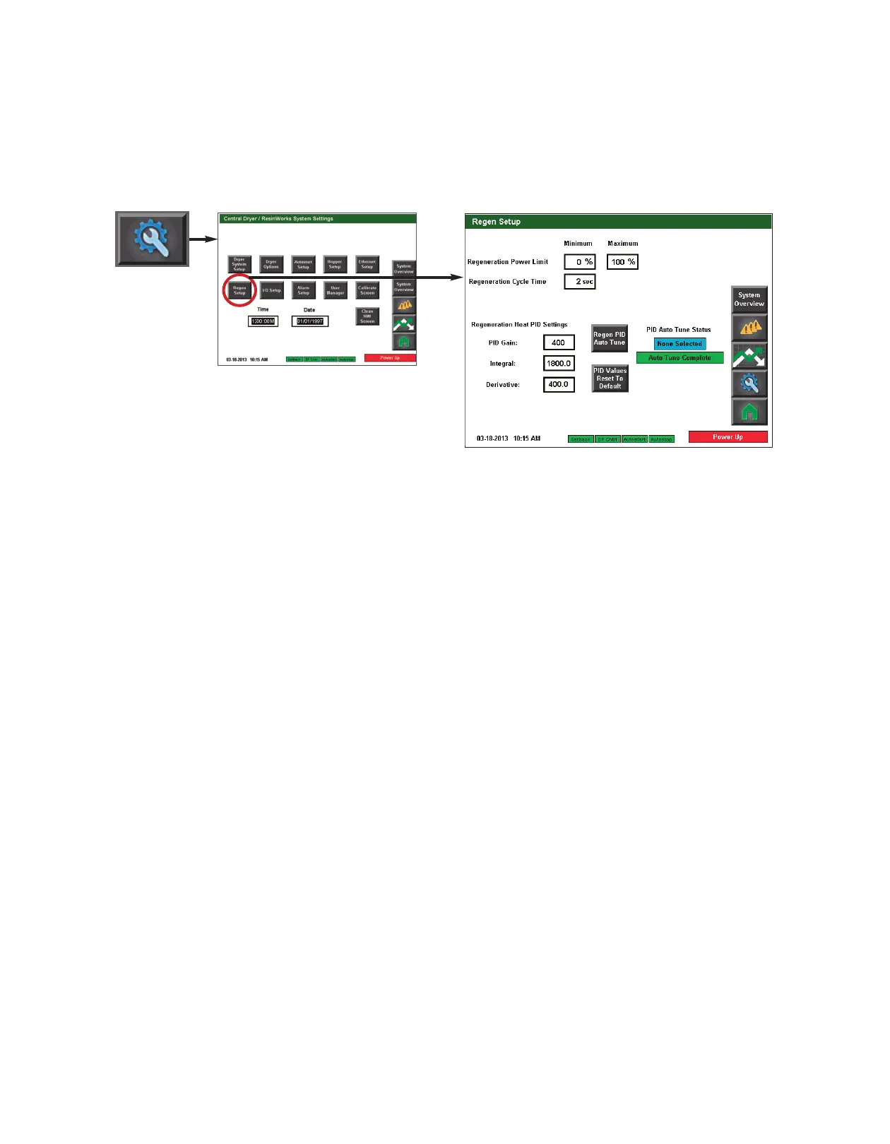 NOTE: It is not typically necessary to use the Regen PID Auto Tune or the Reset PID Values to Factory button.