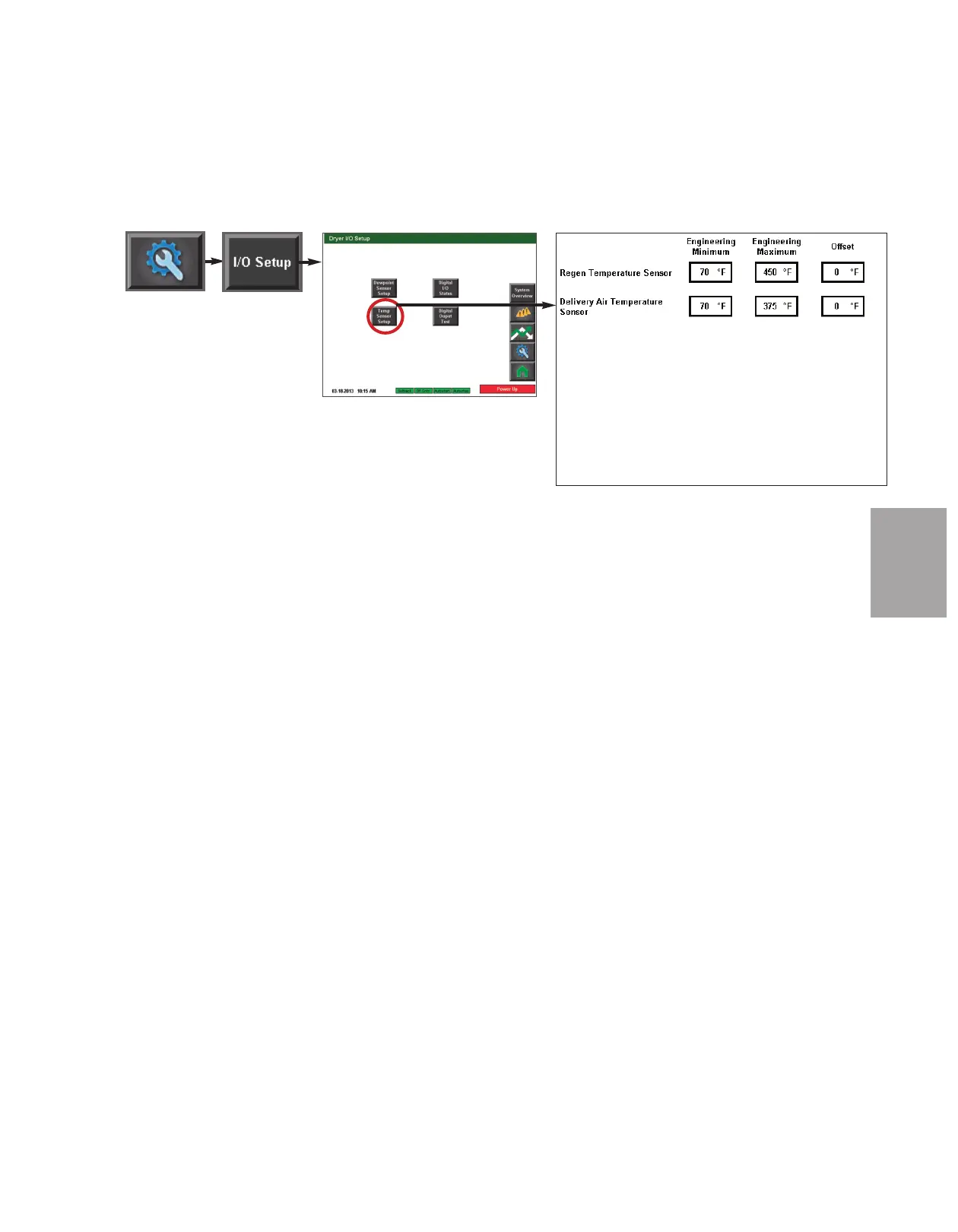 The test screen allows the user to set the setpoints for the Temperature Sensors: