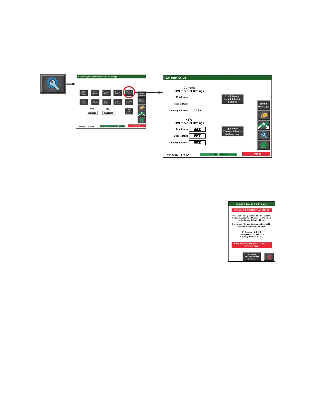The Ethernet Setup screen provides the user with the ability to view current HMI Ethernet