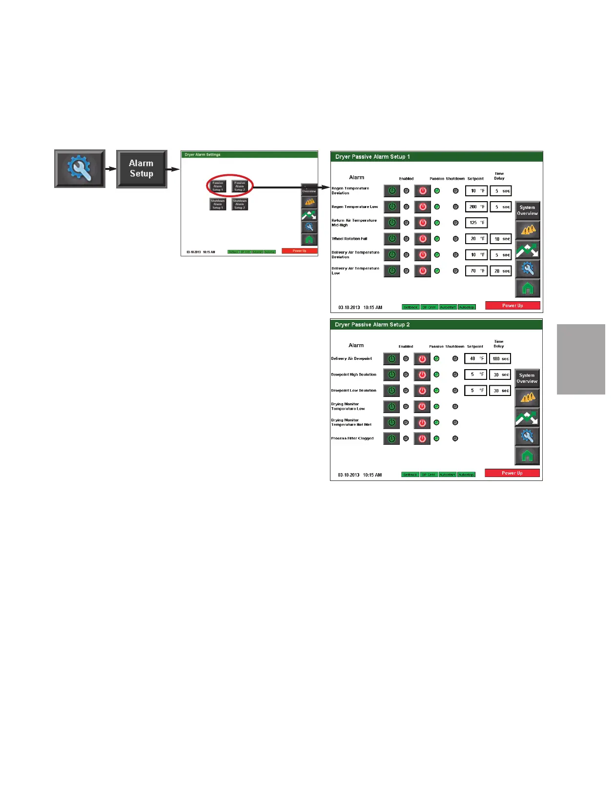 between Passive or Shutdown alarm type. The first “power” button