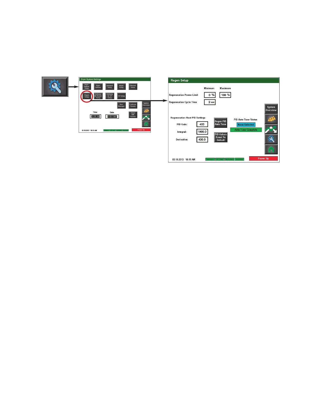 NOTE: It is not typically necessary to use the Regen PID Auto Tune or the Reset PID Values to Factory button.