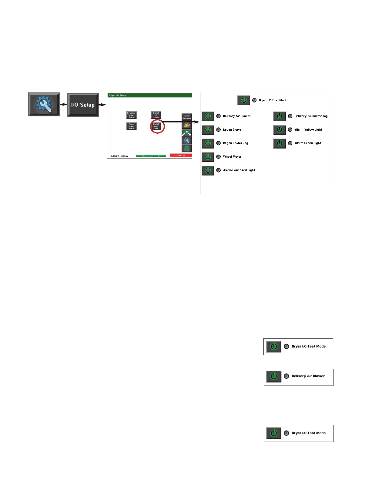 1 Press the power button to enable the Dryer I/O Test