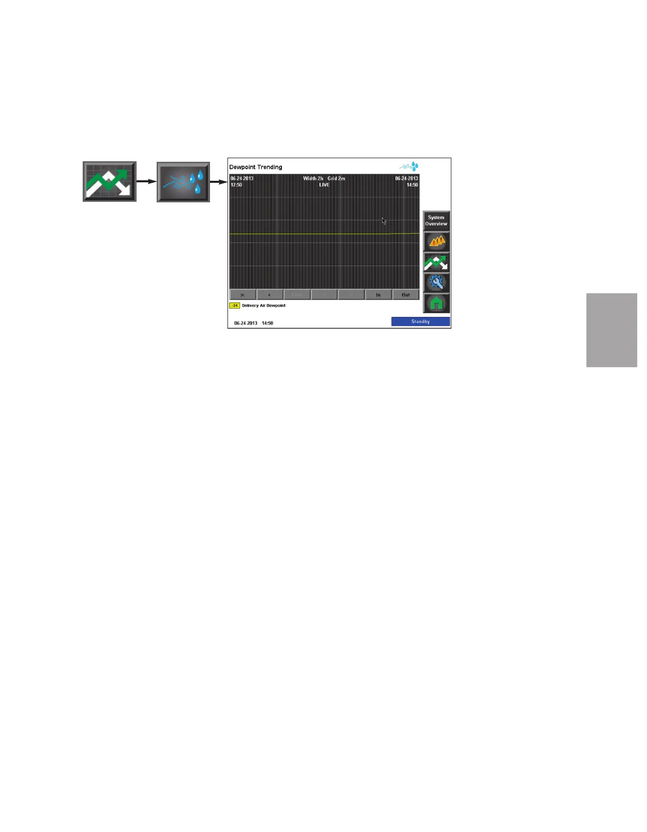 The Dewpoint Trending screen allows the user to view the dewpoint trend vs. time in the