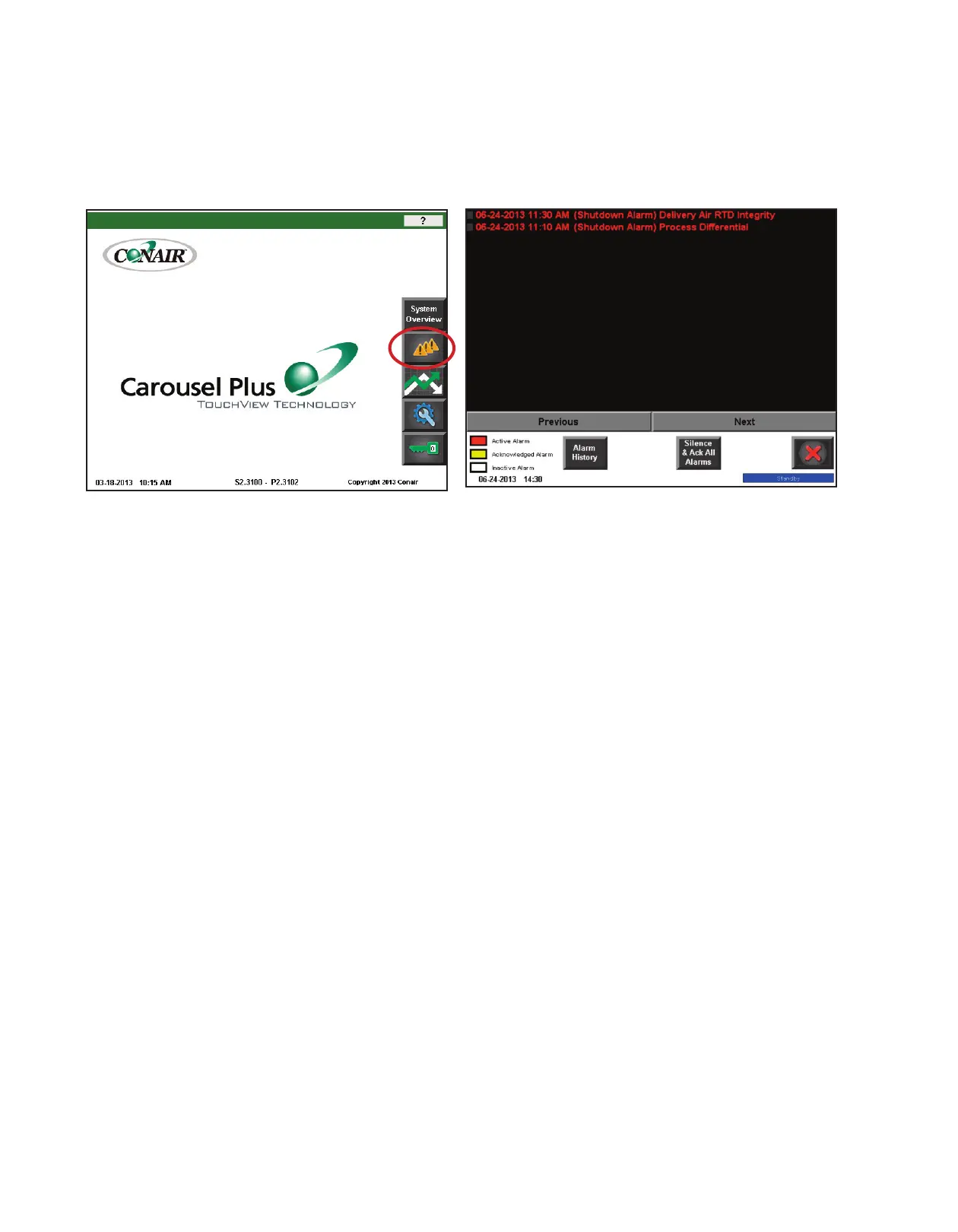 3 Press the “Alarm Log” button from the main screen to access the alarm history and