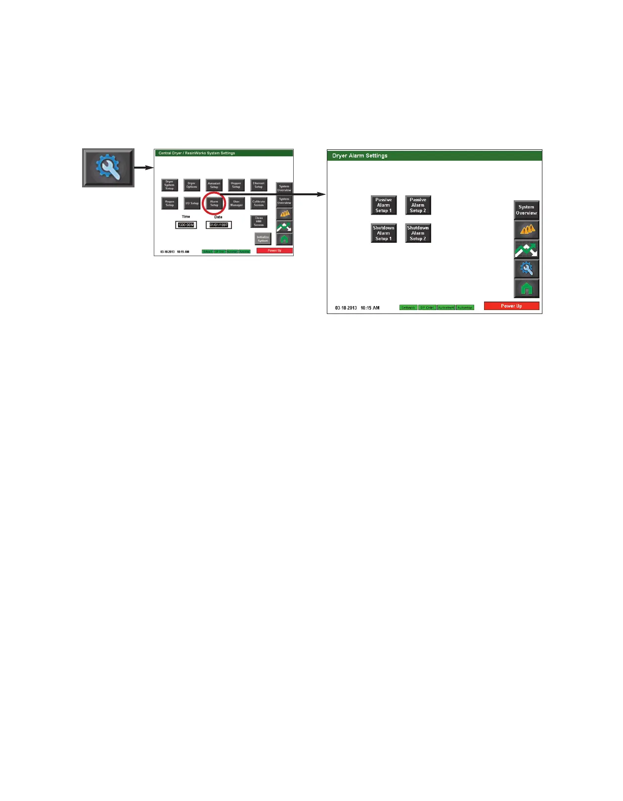 To access the Alarm Setup screen: