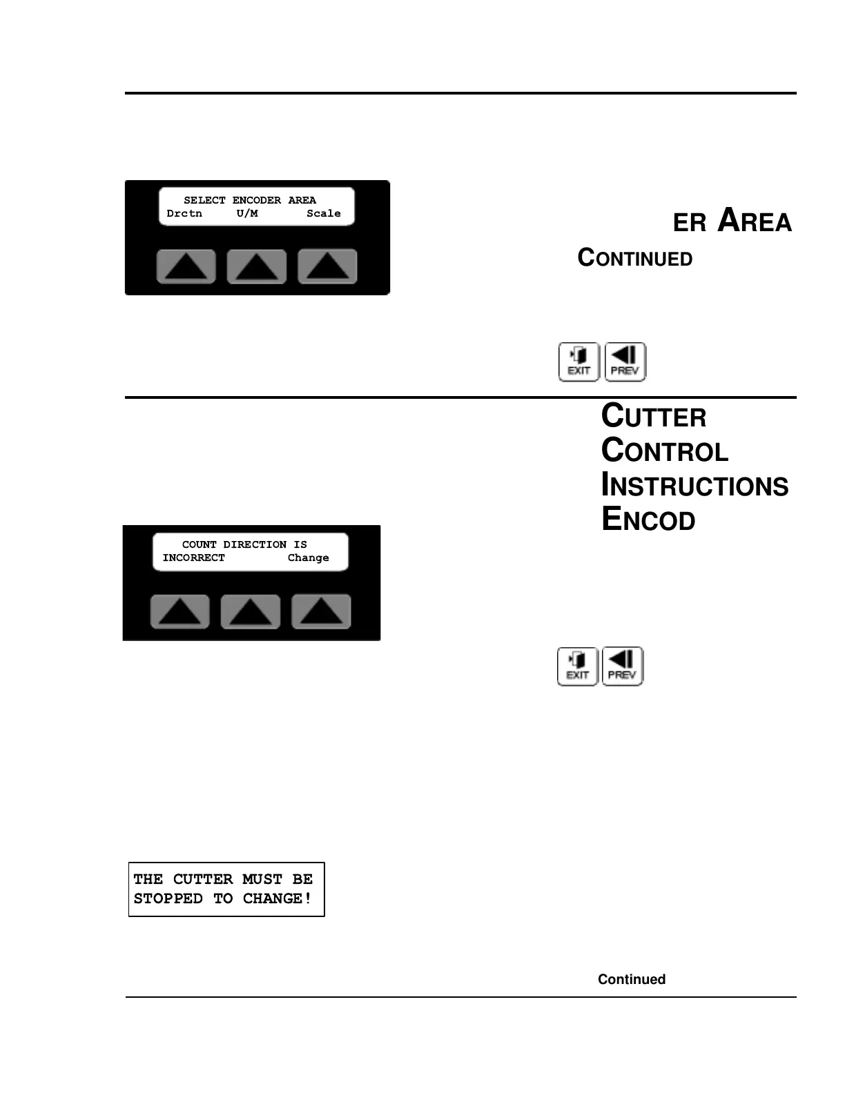 Encdr. Area Screen, the direction of the encoder rotation can