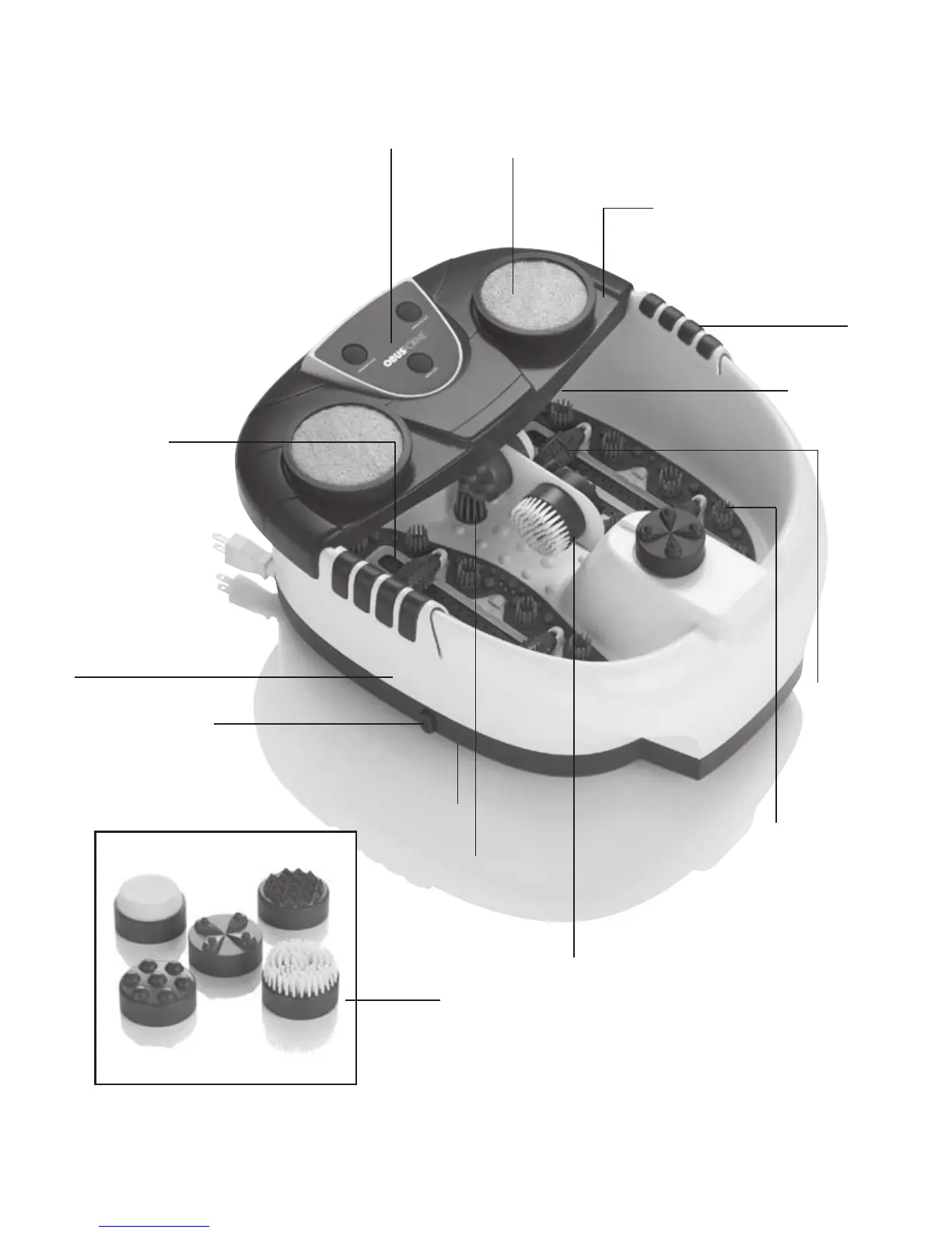 4) 4 spinning rollers provide deep kneading massage to each foot