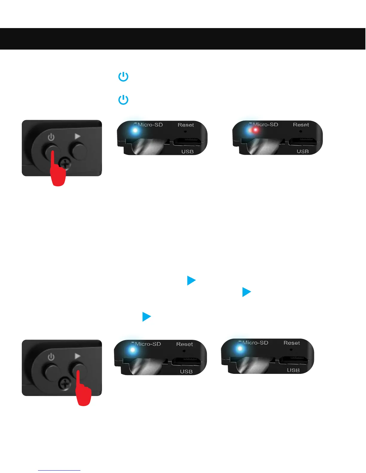 Note: If no microSD is inserted, the LED will flash blue for 10 seconds.