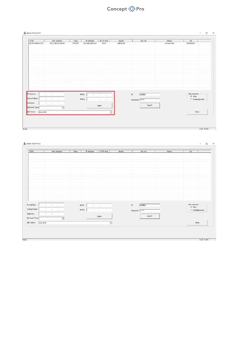 5. The device list window will automatically update after a short interval of time. Configure the
