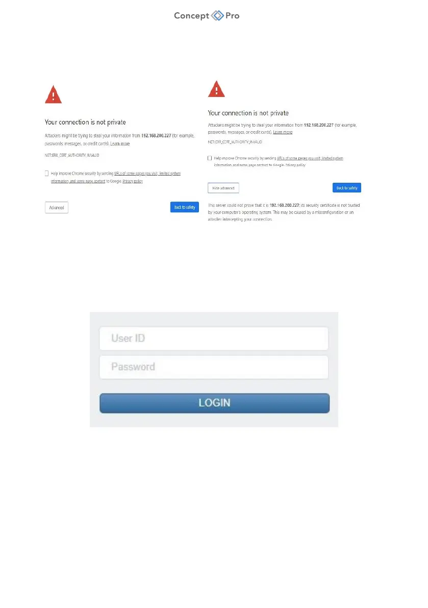 see a security warning as shown below (unlike a portal site that uses a public certificate,