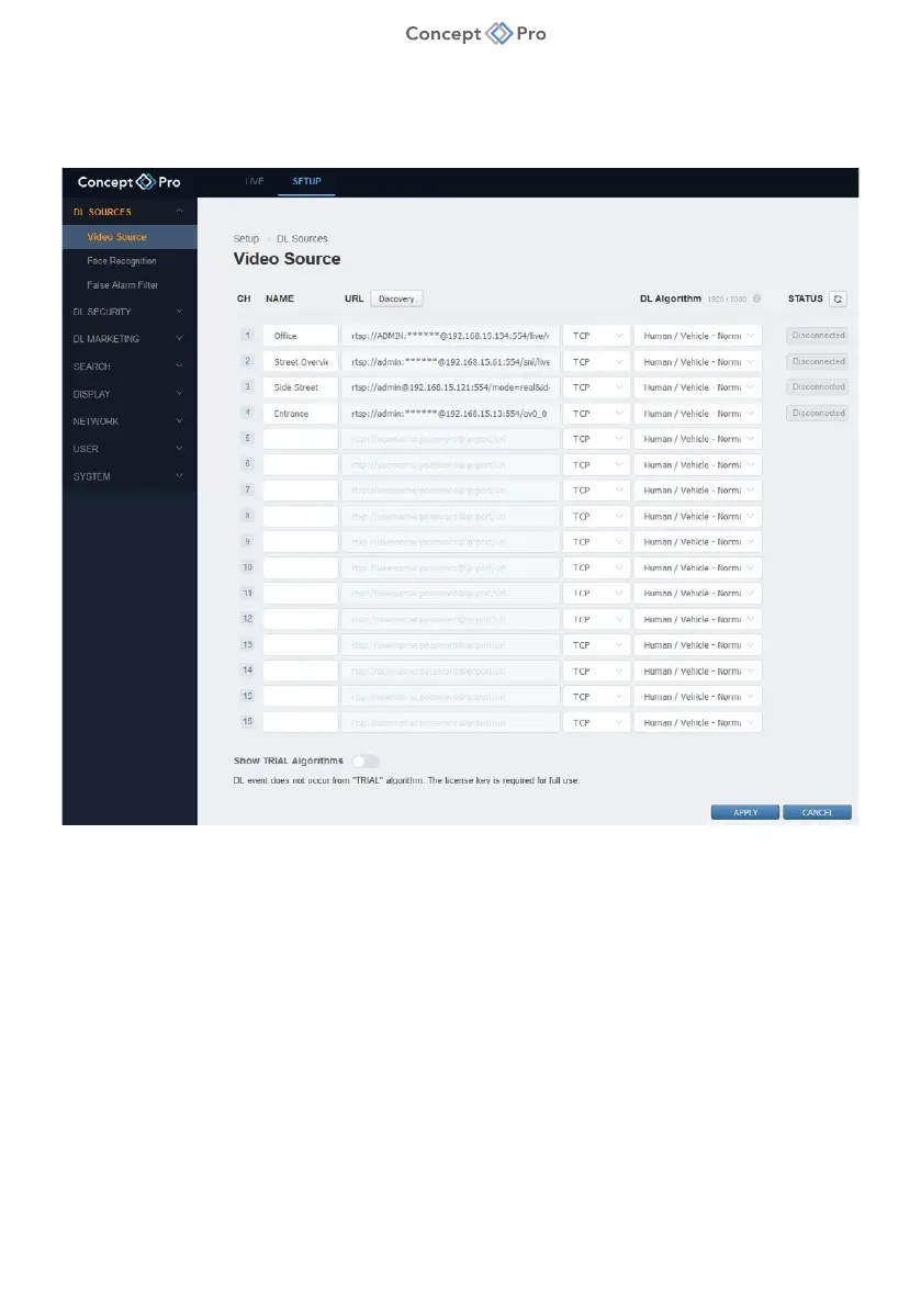 1. From DL PLUS web interface, select <SETUP> tab, then <DL SOURCES> - <VIDEO