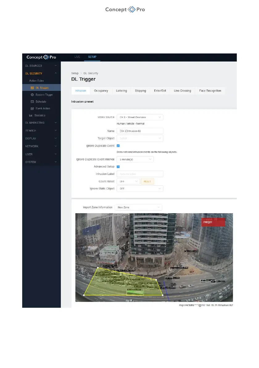 2. Select a DL trigger detection rule to create from Intrusion, Occupancy, Loitering, Stopping,