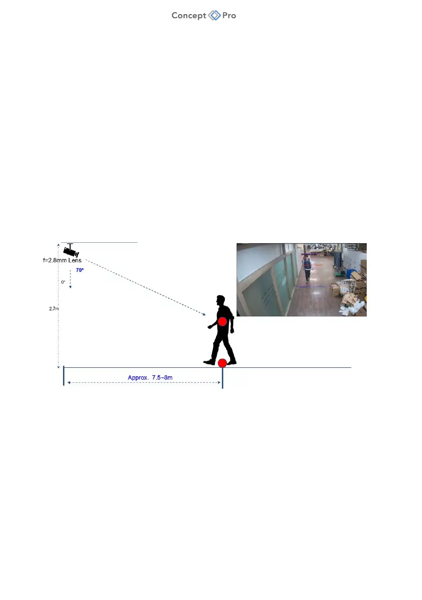 detection zone at 7.5-8m away from the camera. The corresponding ideal installation angle