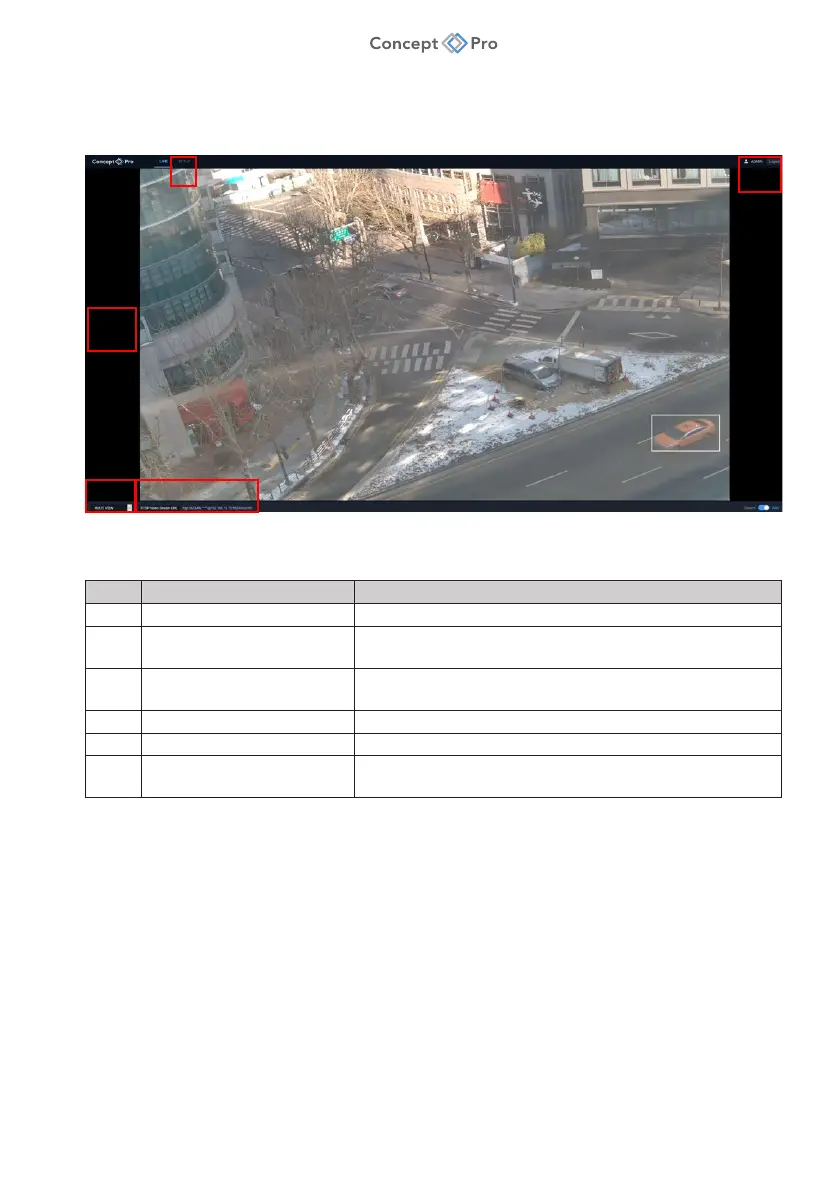 5 RTSP STREAM Displays RTSP stream URL for currently selected live view.