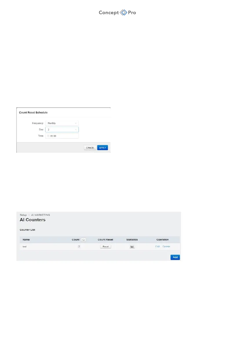c. Count Reset: Click <ADD SCHEDULE> to create a new schedule for resetting the DL Counter.