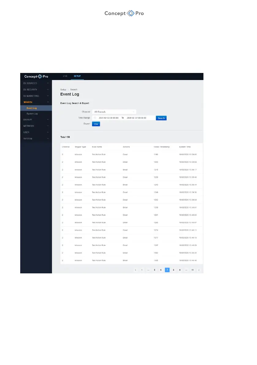 Event data for each channel can be searched and exported in .csv format for future review. To