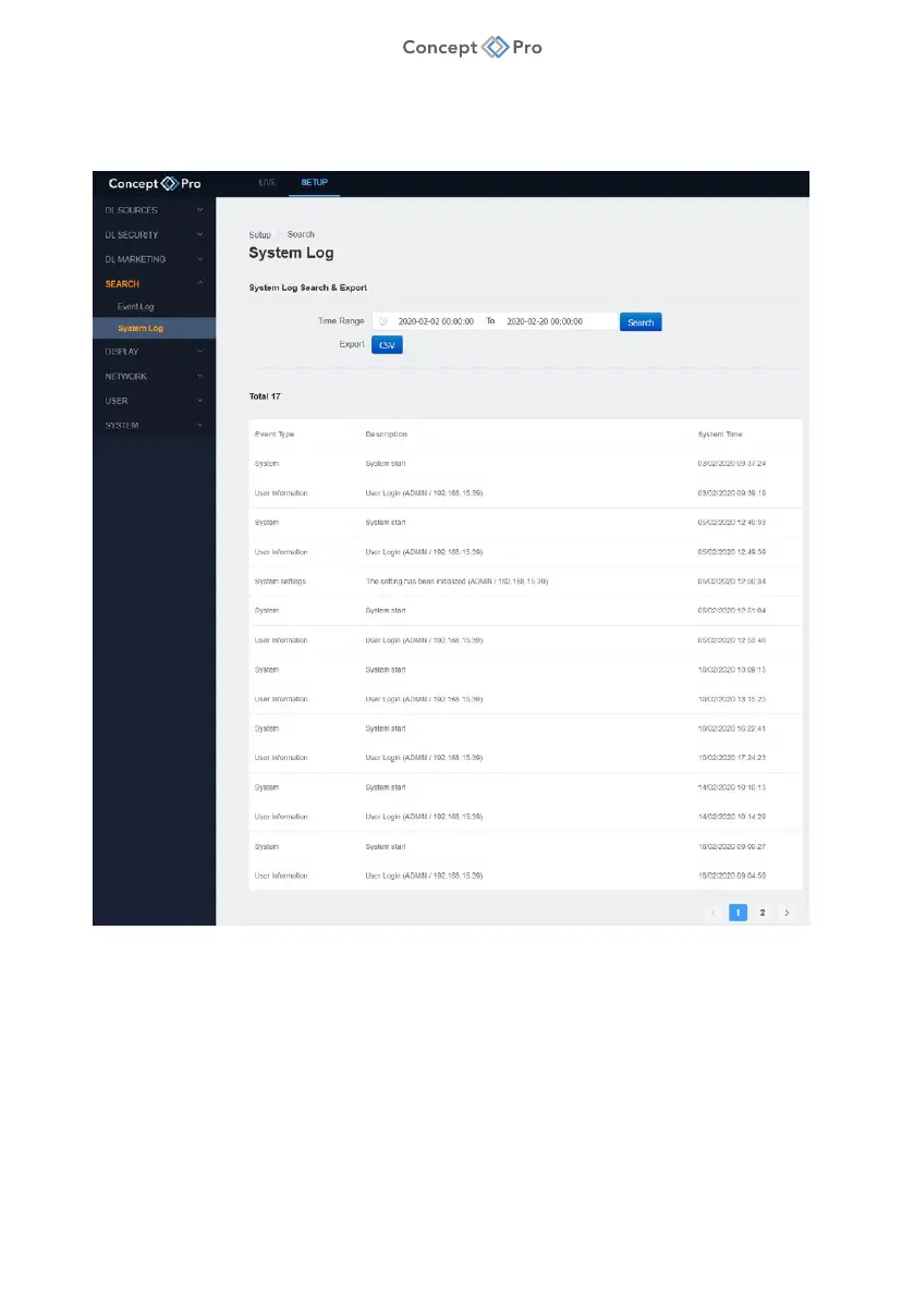 3. From the <SETUP> tab, select <SEARCH> - <SYSTEM LOG> menu.