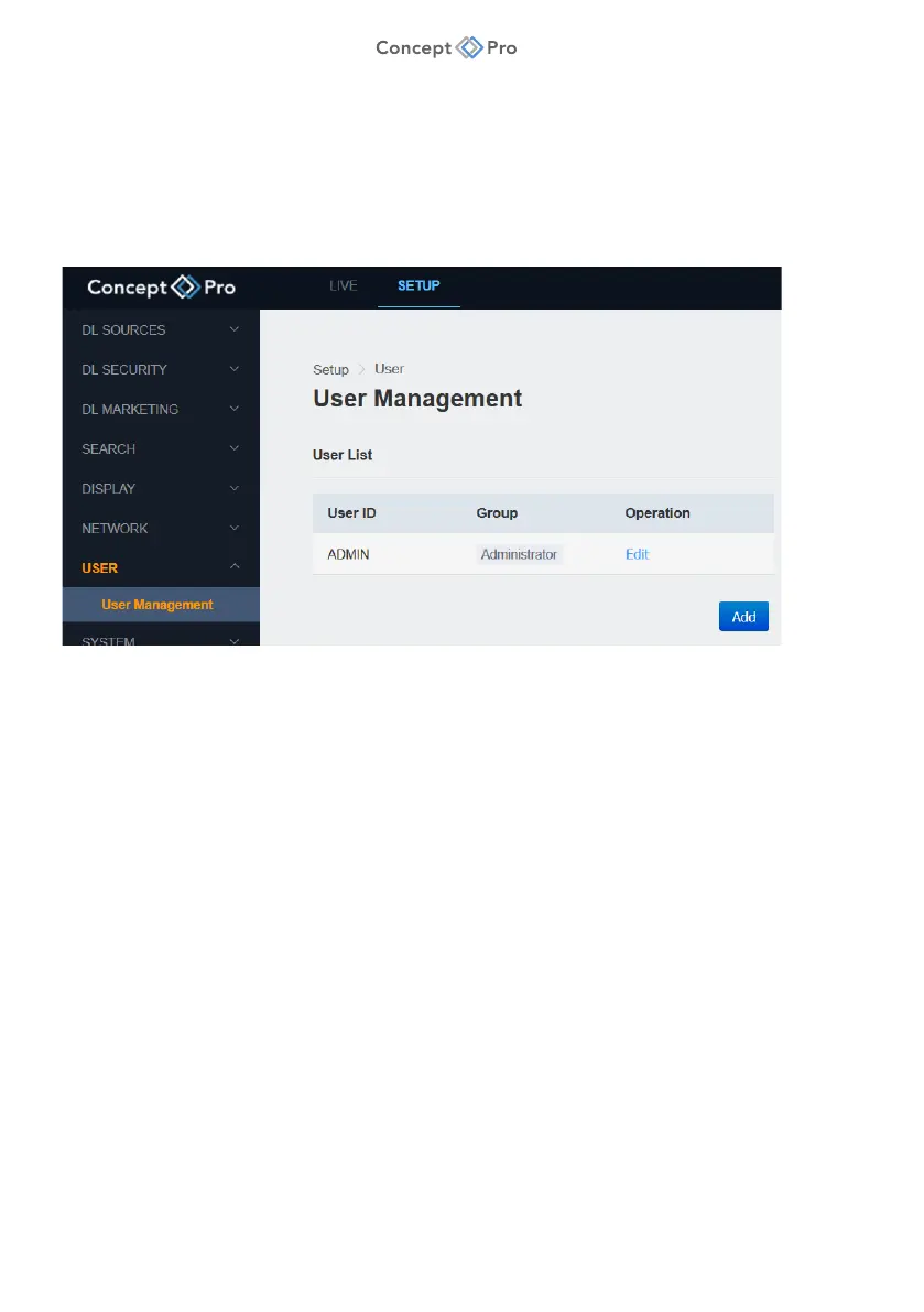 b. Group: Select ADMIN (Setup privileges included) or VIEWER (Live privileges only).