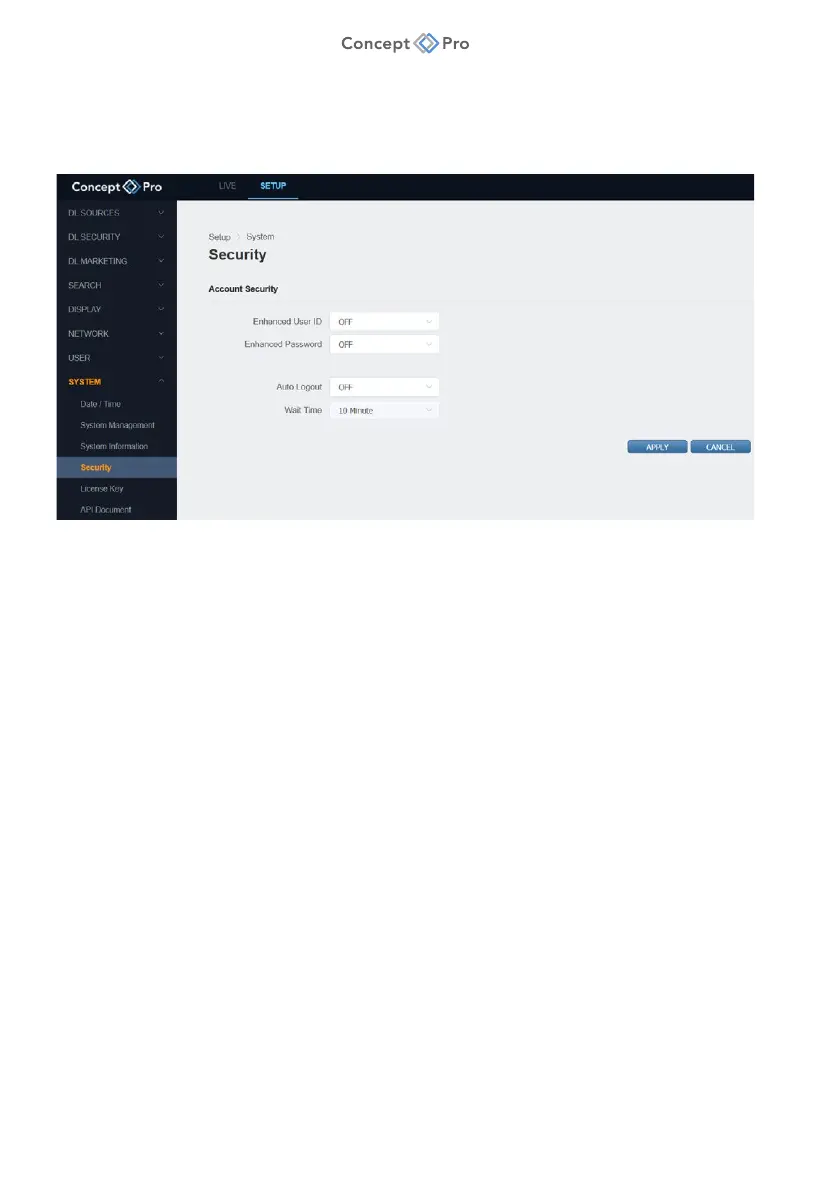 1. From the <SETUP> tab, select <SYSTEM> - <SECURITY> menu.