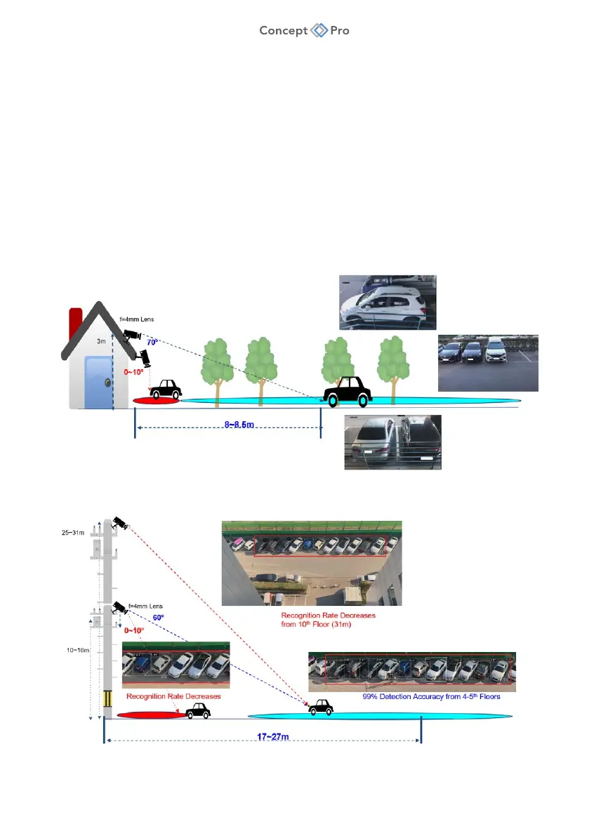 3. Vehicle detection also follows the recommended installation angle/height range. For