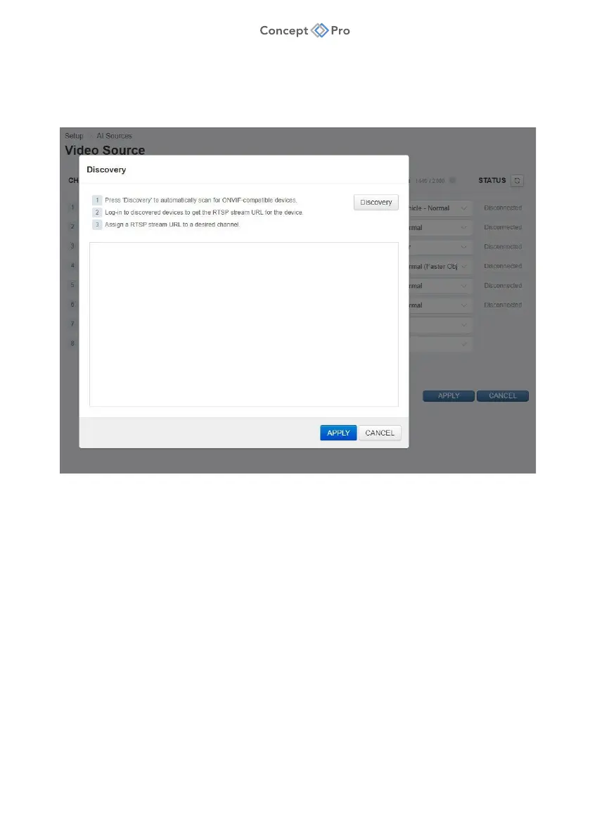 2. Press <DISCOVERY> to search the connected network for ONVIF- compliant devices.