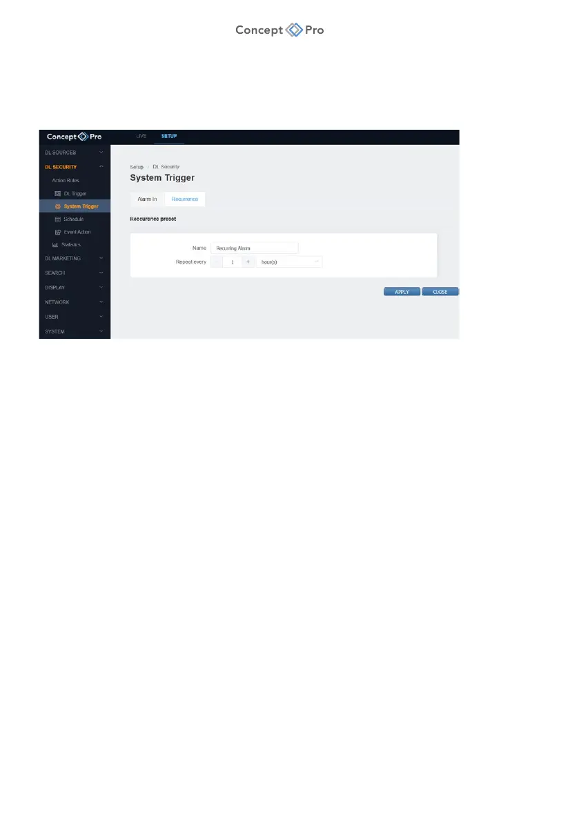 3. Click the <ADD> button to create a new Recurrence System Trigger.