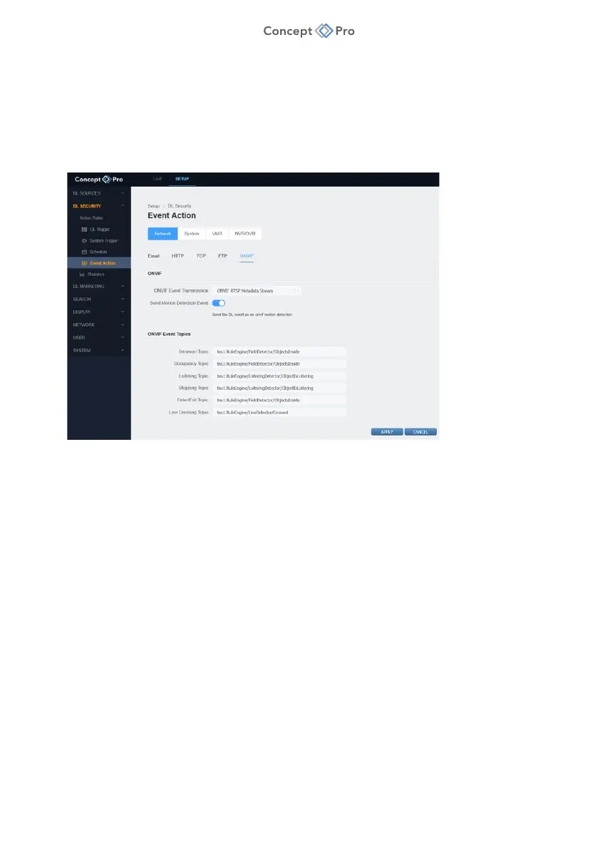 3. Review the ONVIF and ONVIF Event Topic information for reference if configuration from