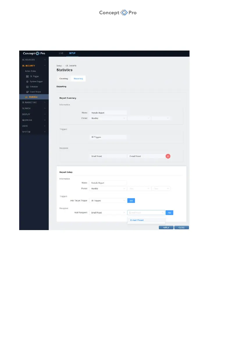 1. From the <SETUP> tab, navigate to <DL SECURITY> - <STATISTICS> menu.