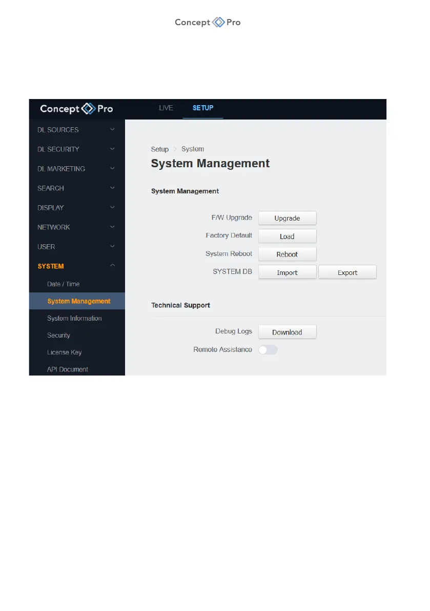export system database files, or debugging. To perform these system management settings,