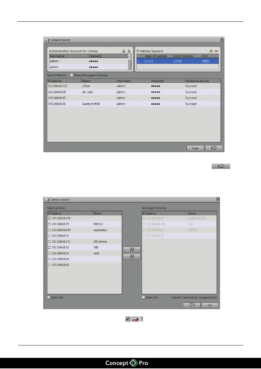 be removed, and click Left Arrow button to remove the camera from the management