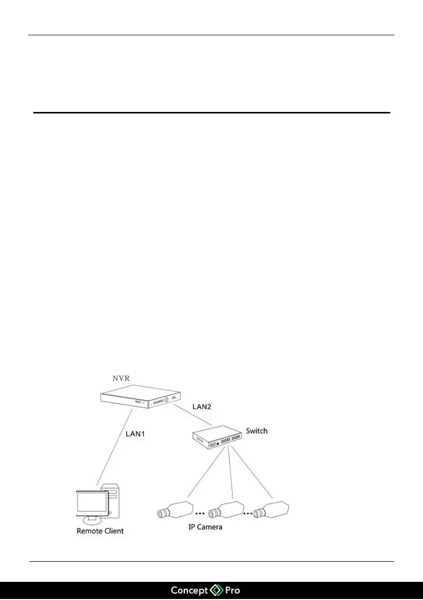 The NVR has two network ports, LAN1 and LAN2. Two networking solutions are