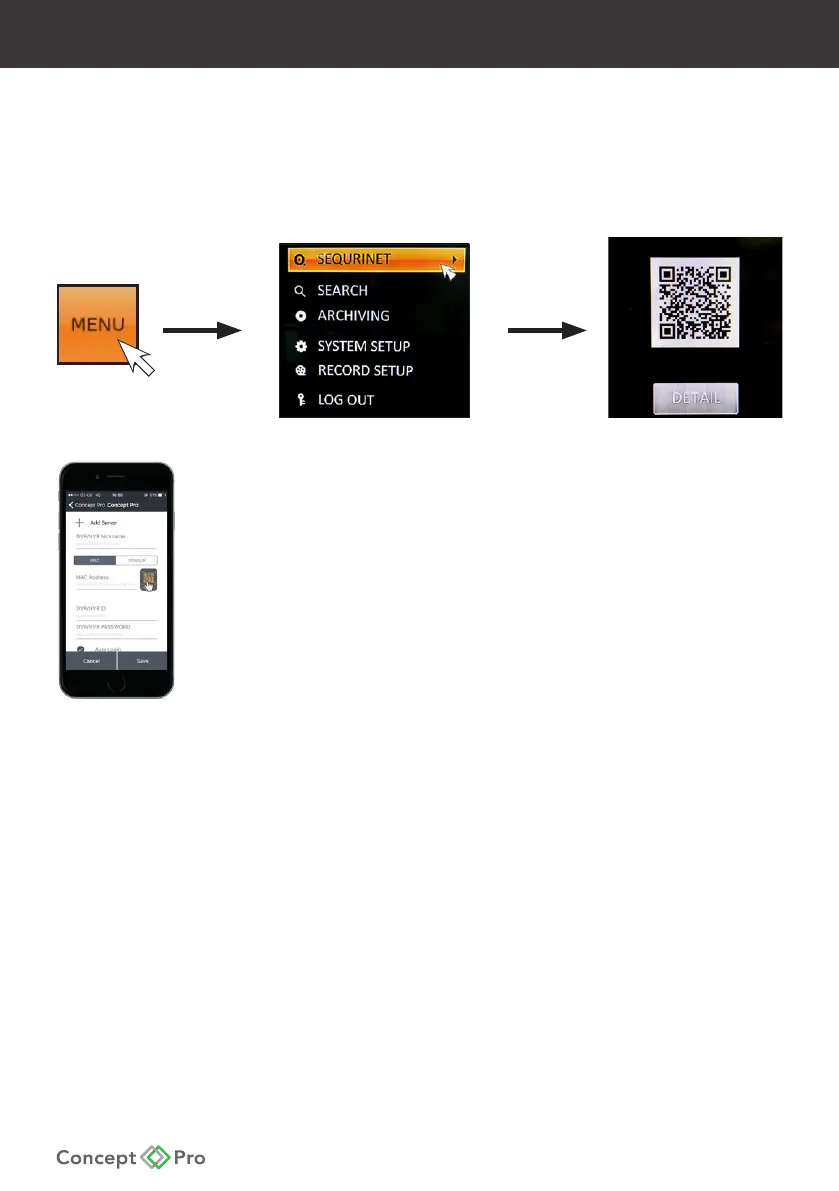 the phone at the QR code on the DVR. The phone will scan the code and the Mac