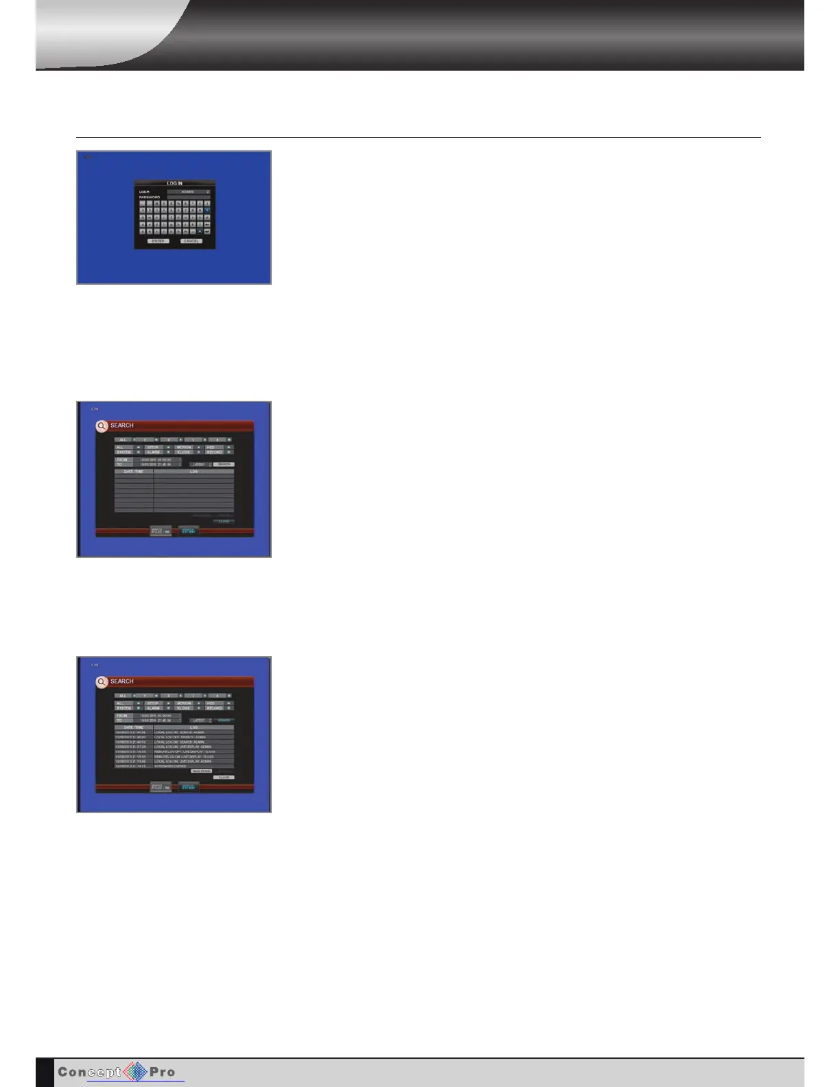To search for an event and playback the recorded footage, press the &%button and log