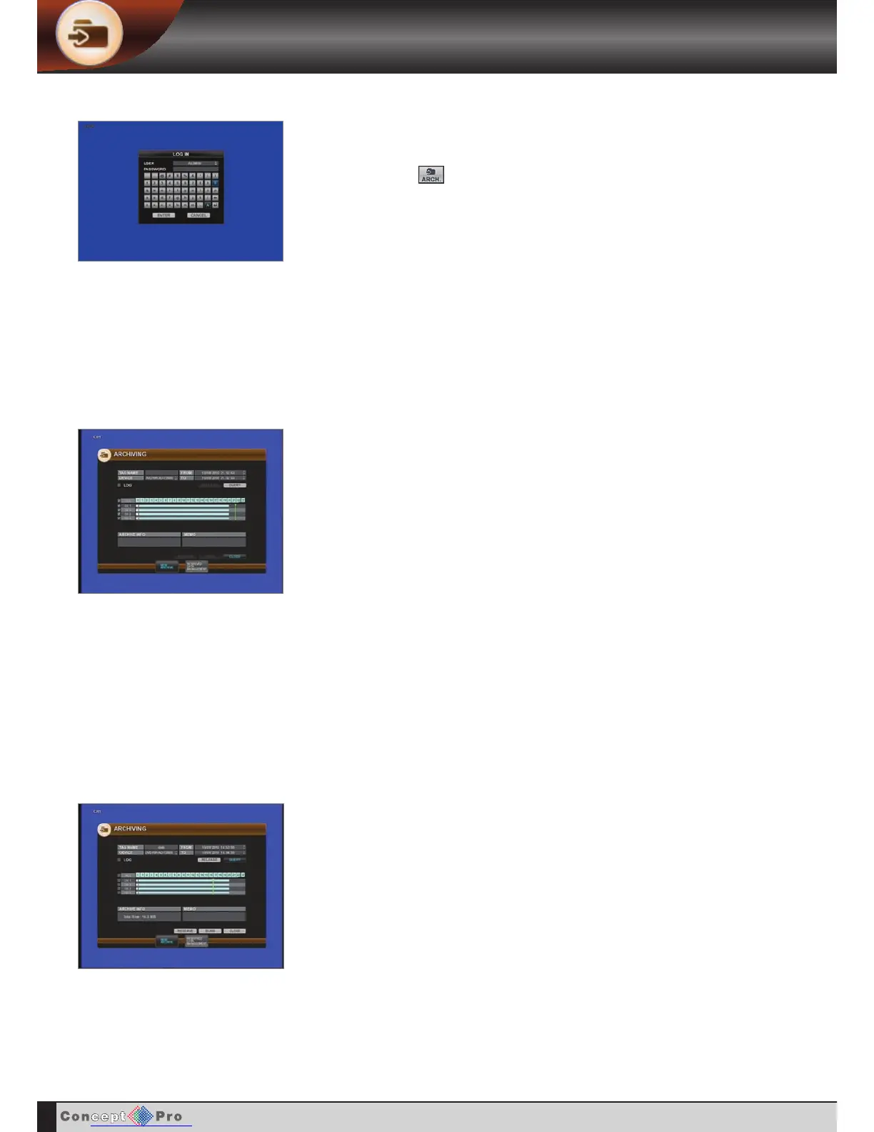 To archive recorded footage to USB memory stick or CD, press the (%&"%,& to highlight
