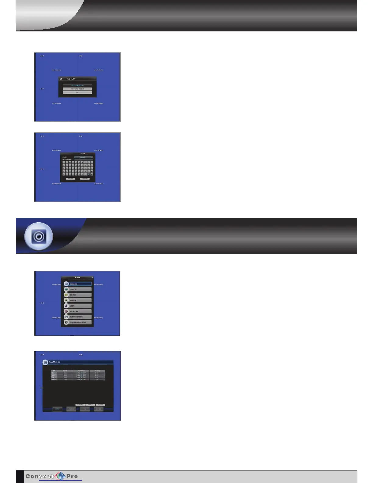 TITLE: For each camera, a title of up to 8 characters can be set using the virtual keyboard.