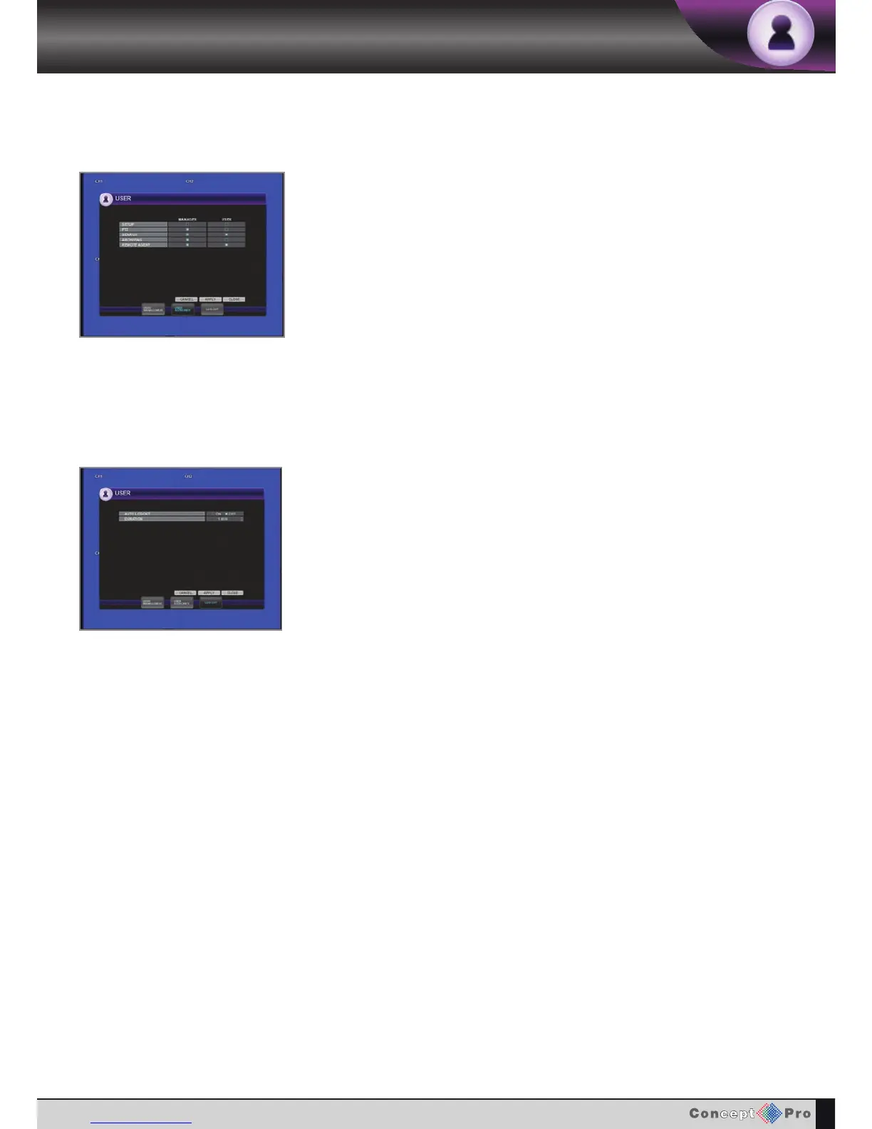 Using the (%&"%,& select the functions you want and the MANAGER and USER