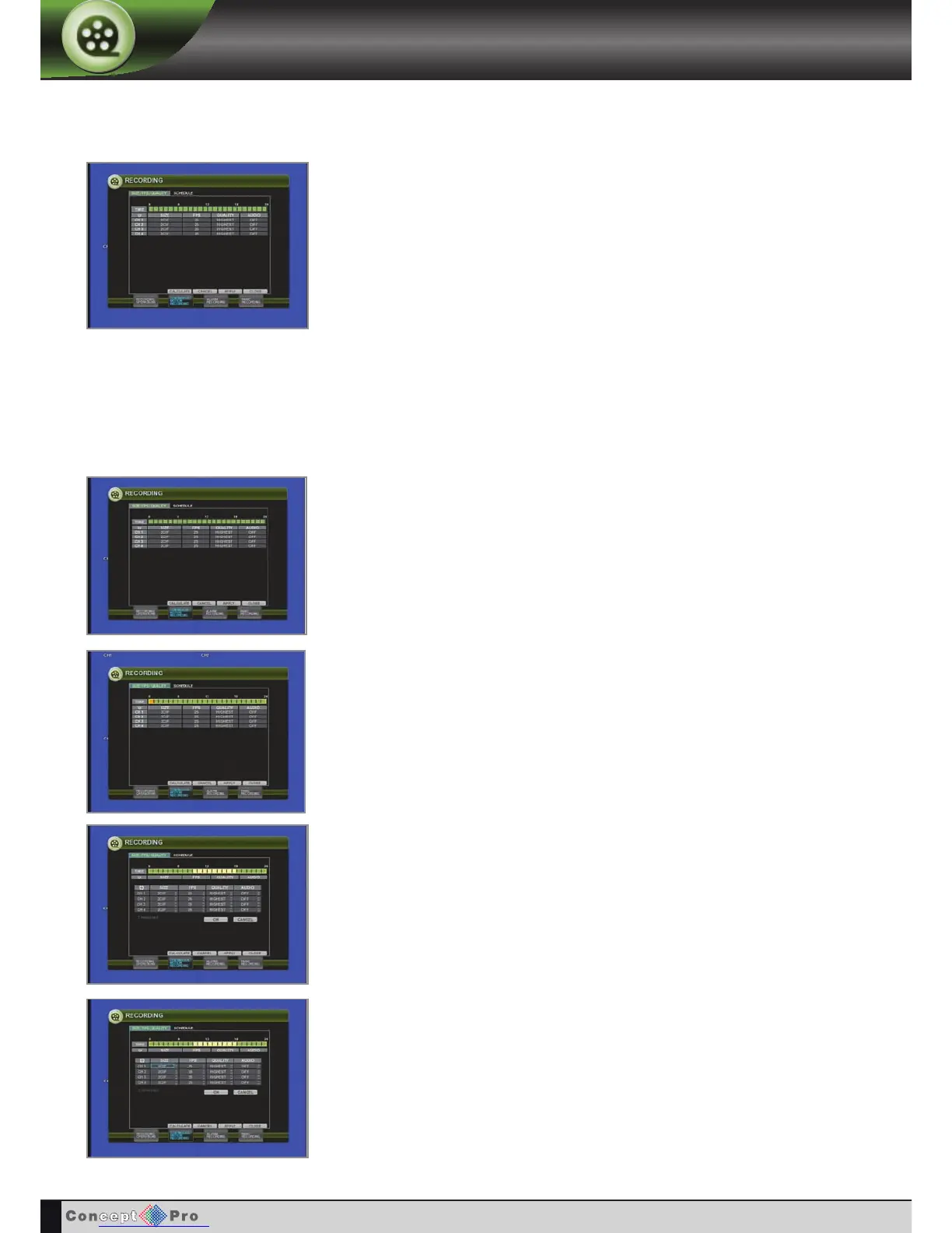 SIZE / FPS / QUALITY: Recording settings for each channel can be defined across a 24 hour period, in