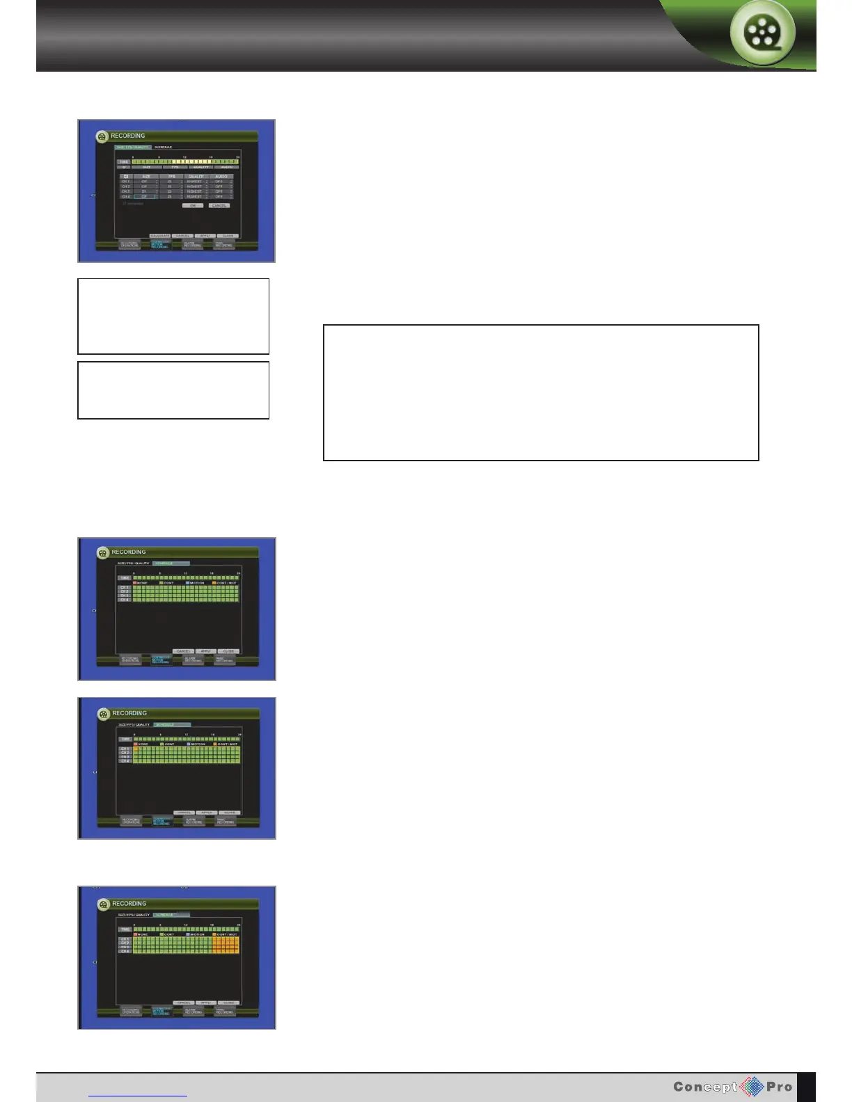 QUALITY: Five different picture recording qualities can be set for each channel.