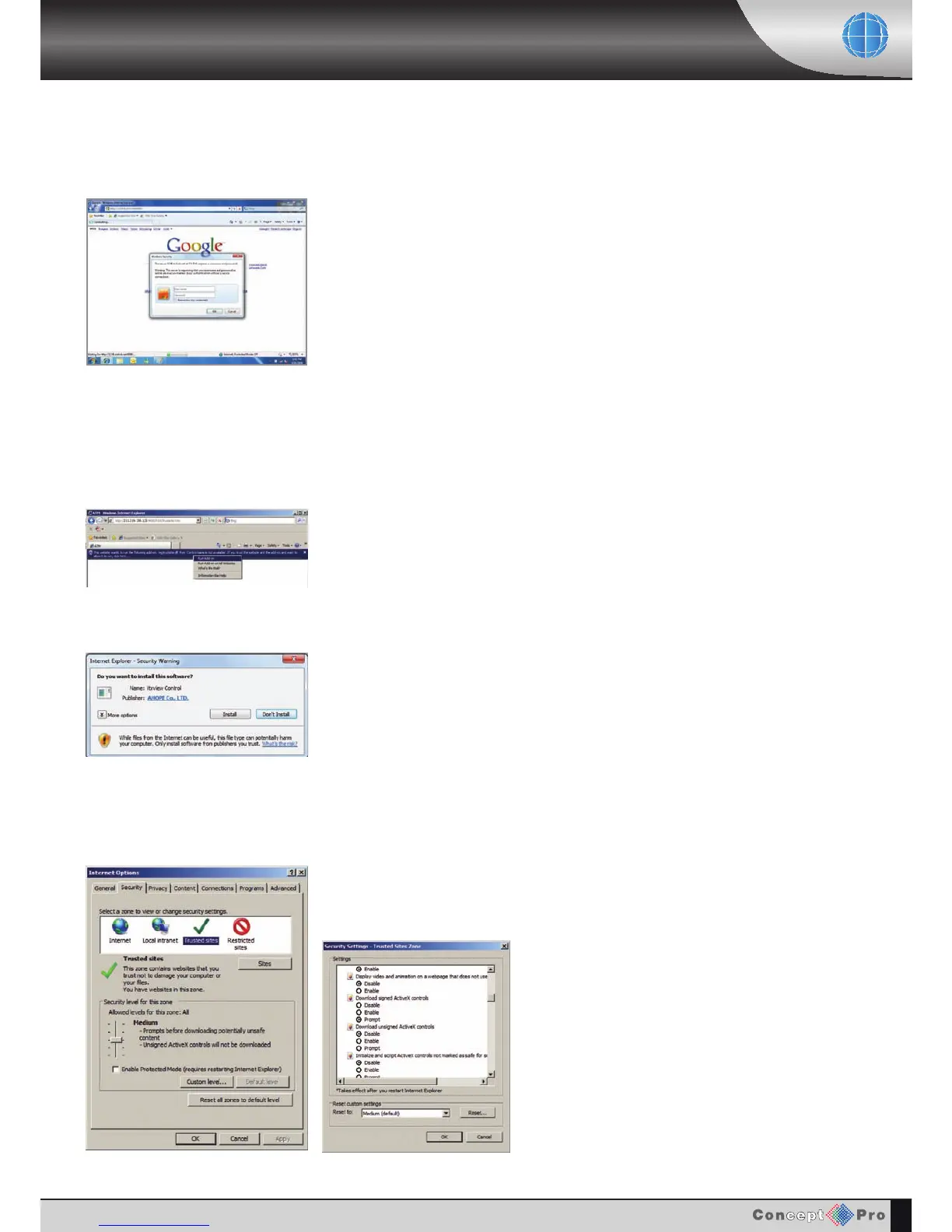 security options regarding activeX, on Internet Explorer security menu.