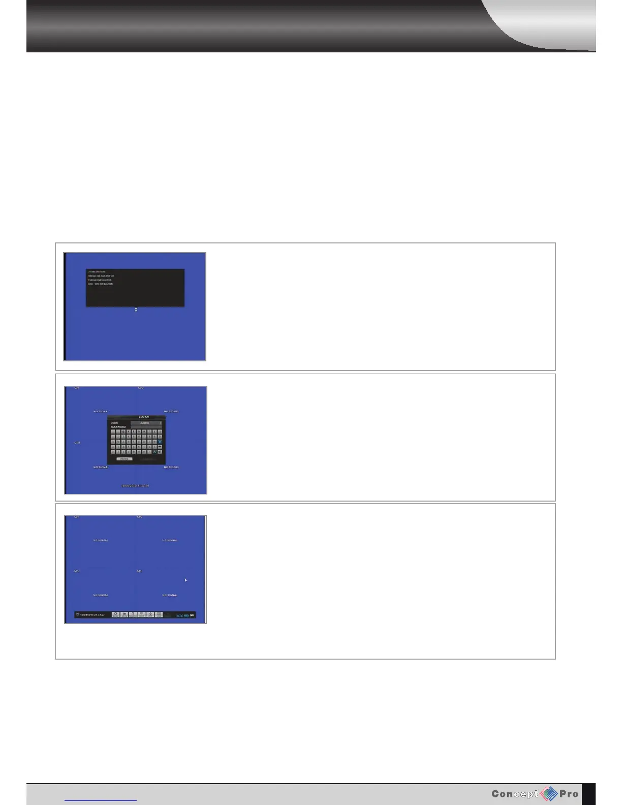 The VXH264 begins normal operation and shows the default display of all 4 channels.