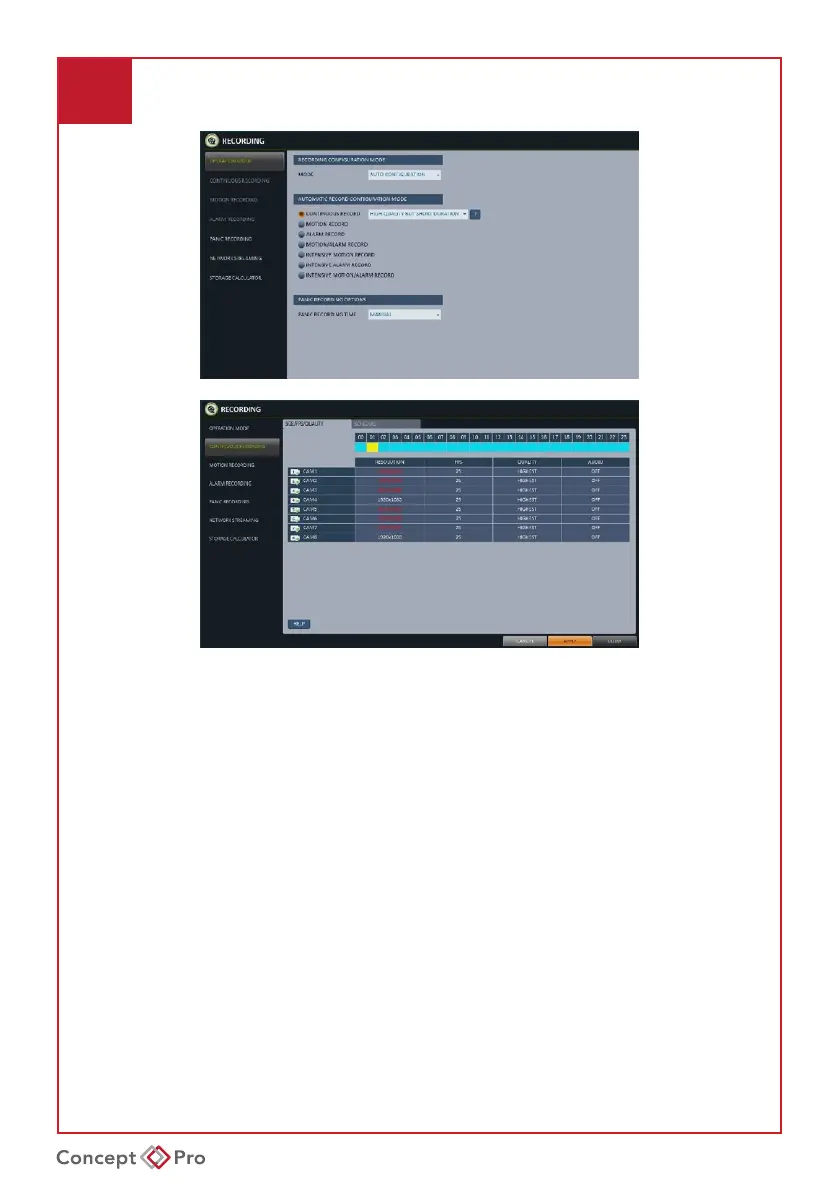 • INTENSIVE ALARM RECORD: Record continuously at low quality and switch to high quality