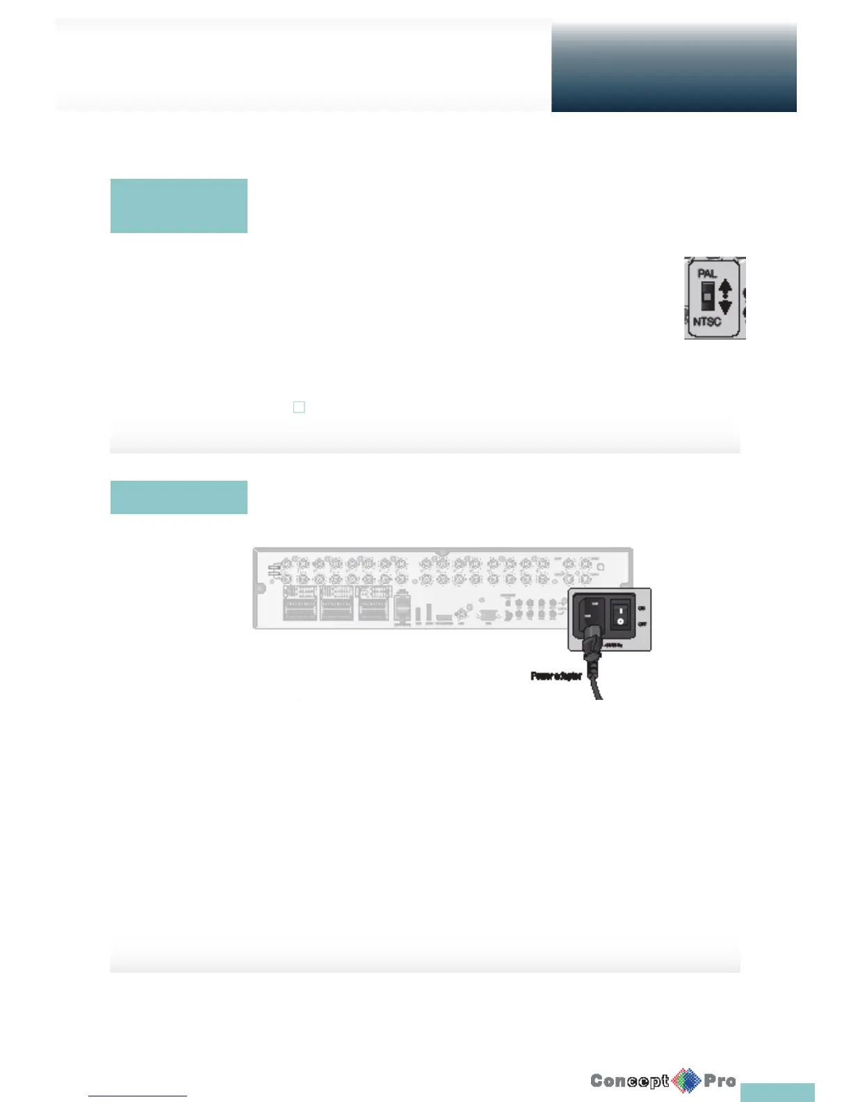 Once the product is set to NTSC or PAL connect cameras of the corresponding