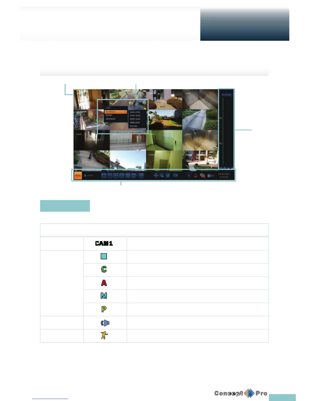 Audio I/O Icons Displays if the audio signal of the connected camera is operational.