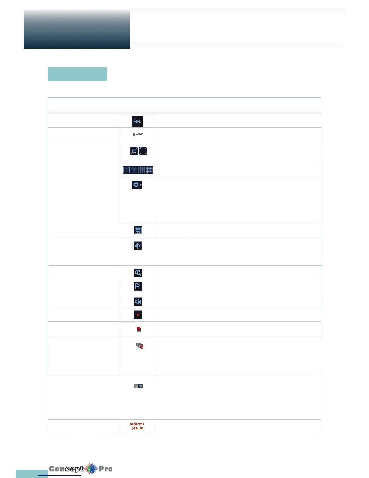 Alarm Indicator Turns on if an event occurs. Click this to check the information of the event that occurred.
