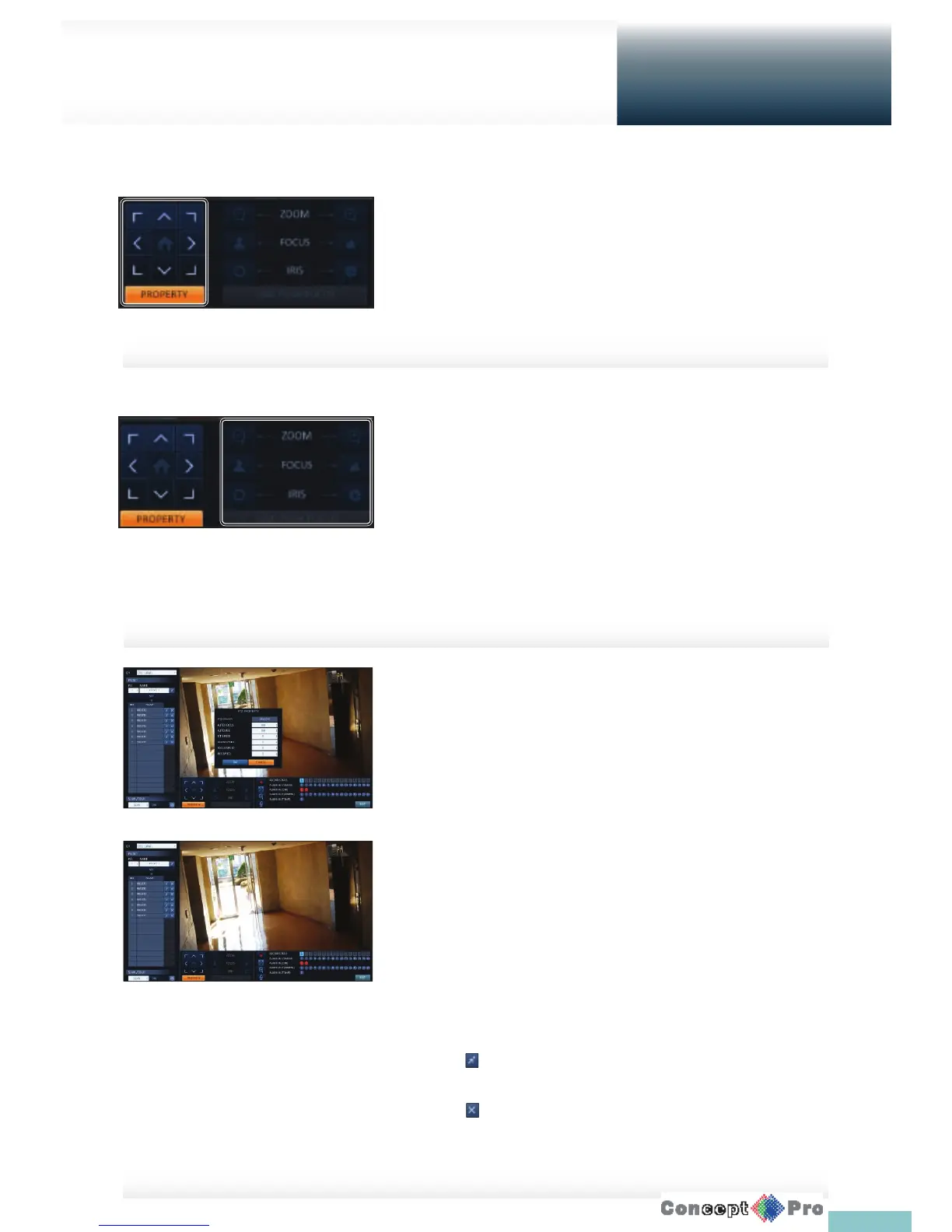 1. To change the individual PTZ setting click <PROPERTY> (for auto focus,