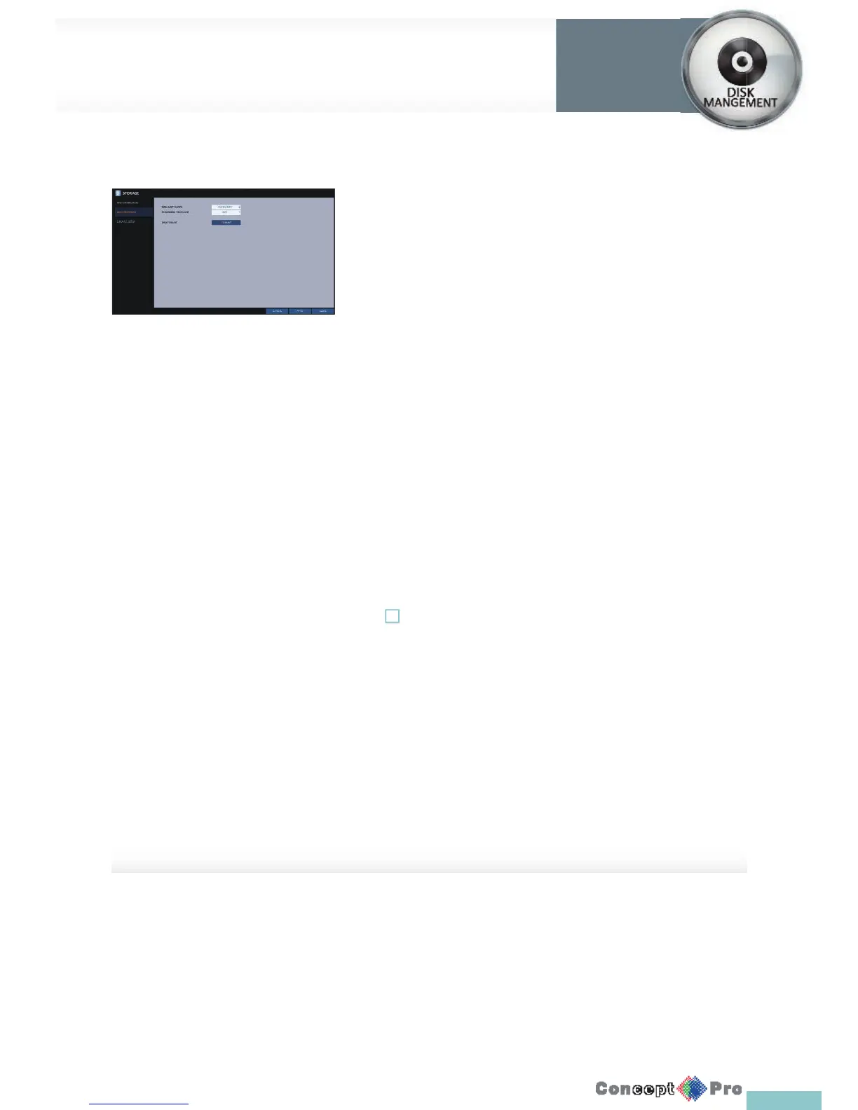 You can set the disk’s write mode, recording time limit and format the HDD.