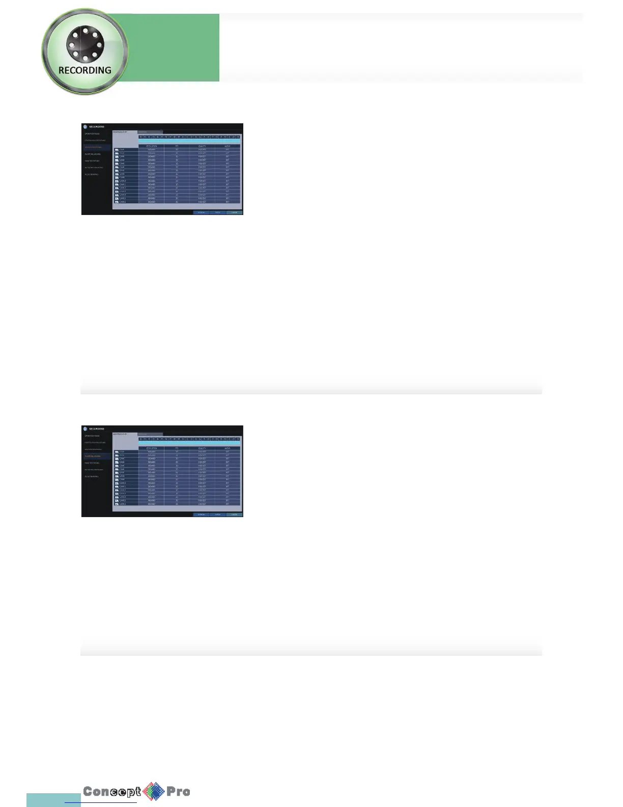 3. Set each item of <RESOLUTION>, <FPS>, <QUALITY>and use of the