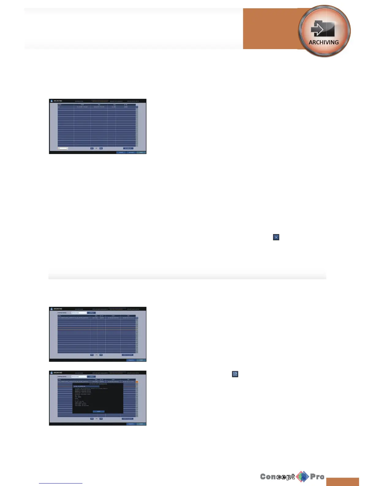 6. To exit the Archive menu, click <CLOSE>.